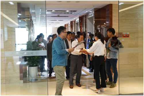 劉主任、李書記、楊校長一行35人首先在美盛中心參觀了美盛地產集團的辦公區域。為迎接老師們的到來,美盛地產集團為每一位老師都精心準備了一支康乃馨,并送上了深深的節日祝福。