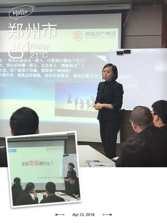 4月13日,來自各地市項目公司及集團各中心的89名新員工相聚集團參加為期兩天的新員工入職培訓,在本次培訓的開訓儀式上,美盛地產集團副總裁焦紅首先代表集團向各位新伙伴的加入表示歡迎。