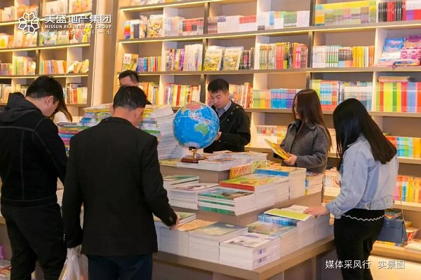 在美盛·教育港灣項目新華書店,置身琳瑯滿目的書籍之中,每一步皆蘊含著濃郁的書香氣息。傳統書店與千畝大盤的創造性結合,迸射出了文化光芒,打破了以往大家對于地產項目銷售部的印象,進而對這樣一個“教育大城”更加充滿信心與期待。