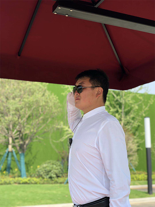 回顧以往的兩個月,從開荒到開放再到開盤,每一次的重大活動他都首當其沖全力以赴、總是來不及擦下滿頭的汗珠,給我們留下了深刻的印象。作為一名普通的秩序員,他與其他秩序員一樣,每天站崗、指引、訓練,悉心保衛案場內外的安全。