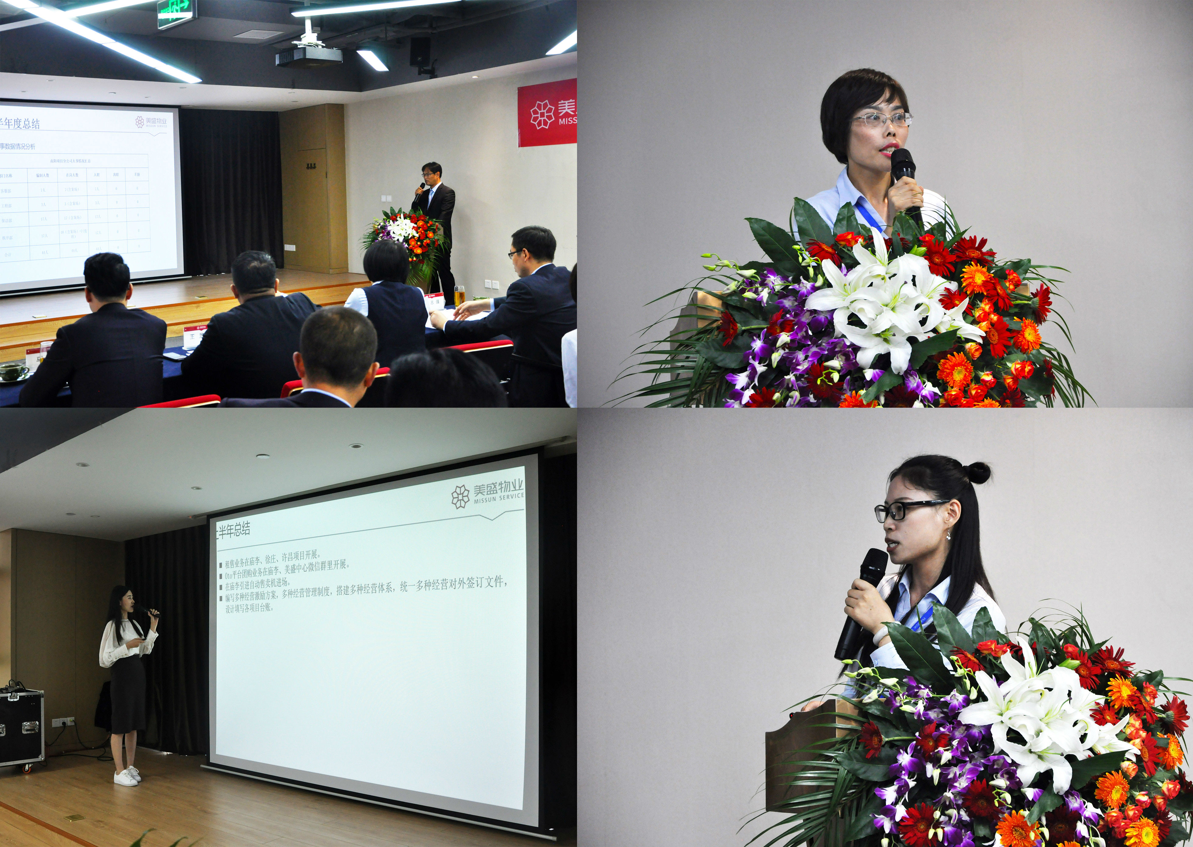 年中總結會主要議程——工作匯報,分別由鄭州分公司、漯河分公司、許昌分公司、美盛中心、南陽分公司、品牌運營部、經營部、人力行政部、工程前介部、物業部、財務部等主要負責人,一一匯報各自2020年上半年的工作總結與下半年的工作計劃。