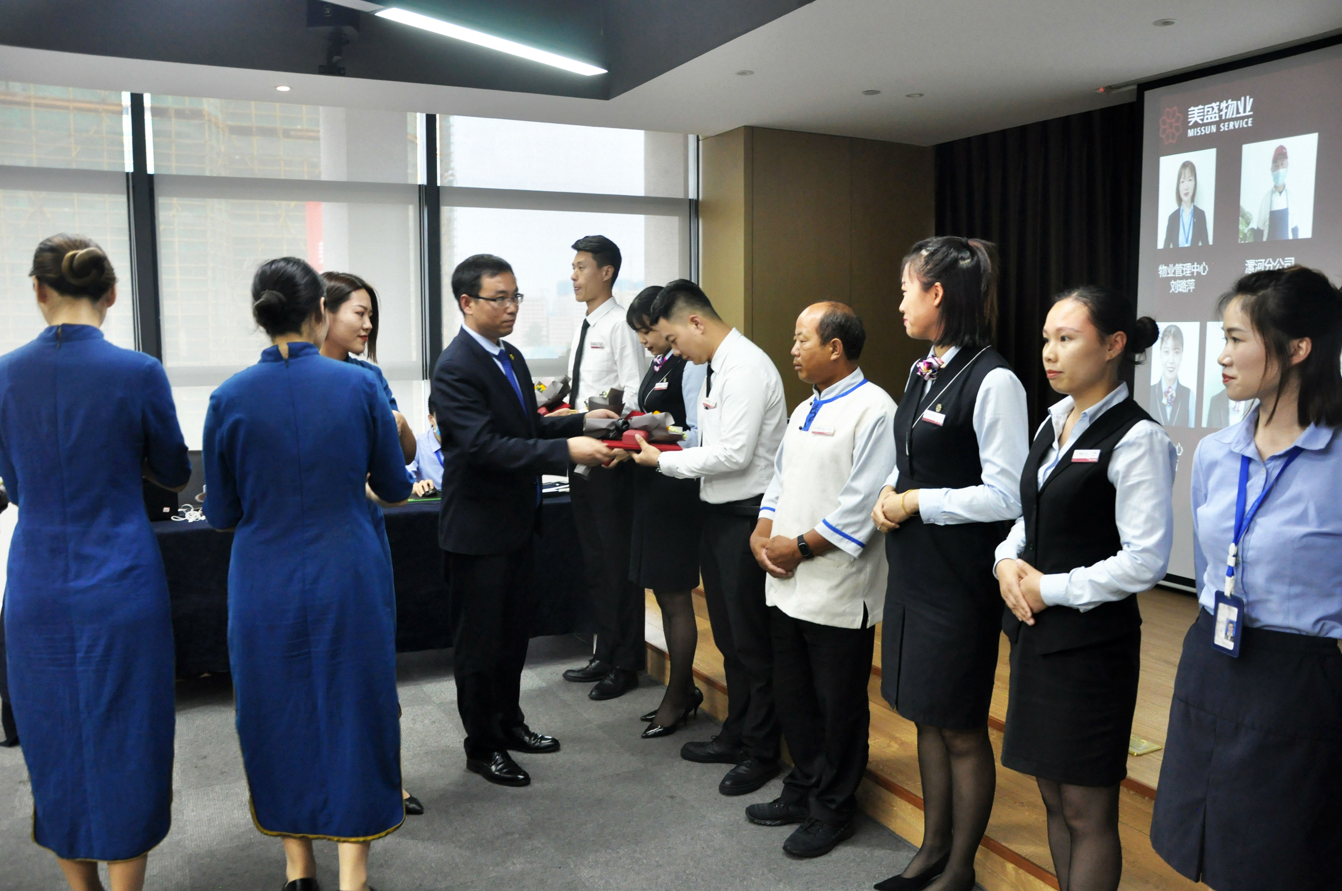 美盛物業馬總親自為上半年的美盛“物業之星”頒發證書